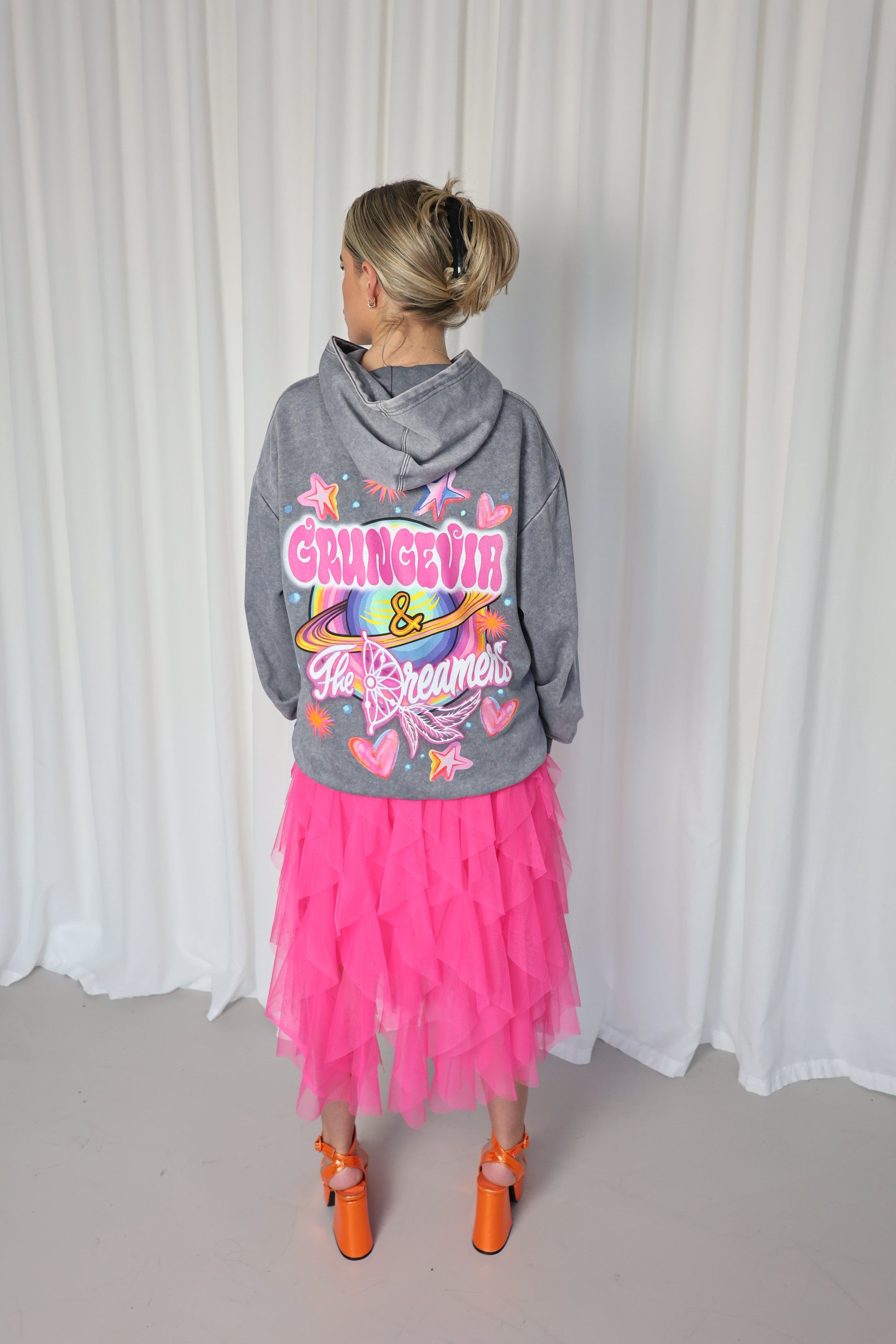 Oversized lightweight fit with added chest and back graphic design. Our hoodies are Acid washed with the distressed look vibe!